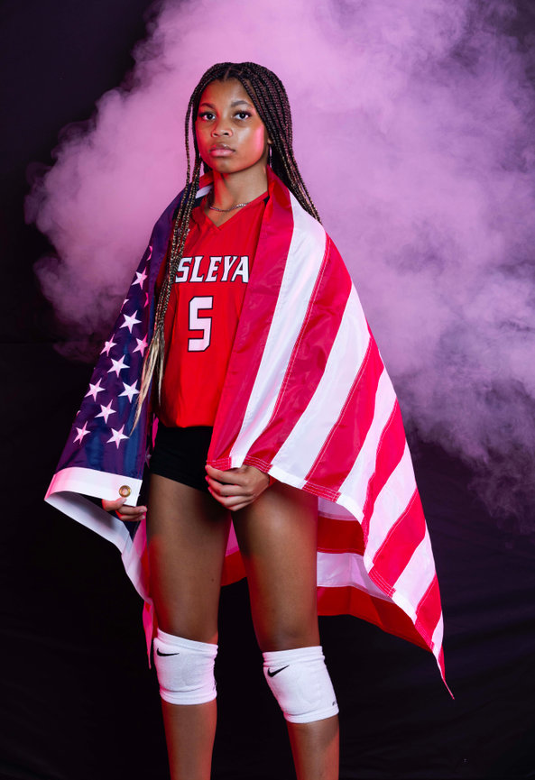 As you can see, we photograph everything from Basketball to Wrestling. With the exception of action images, we photograph individuals against a white backdrop. We generally take 3-5 different poses. We then extract them from the background and place them on a virtual background. See example to the right.